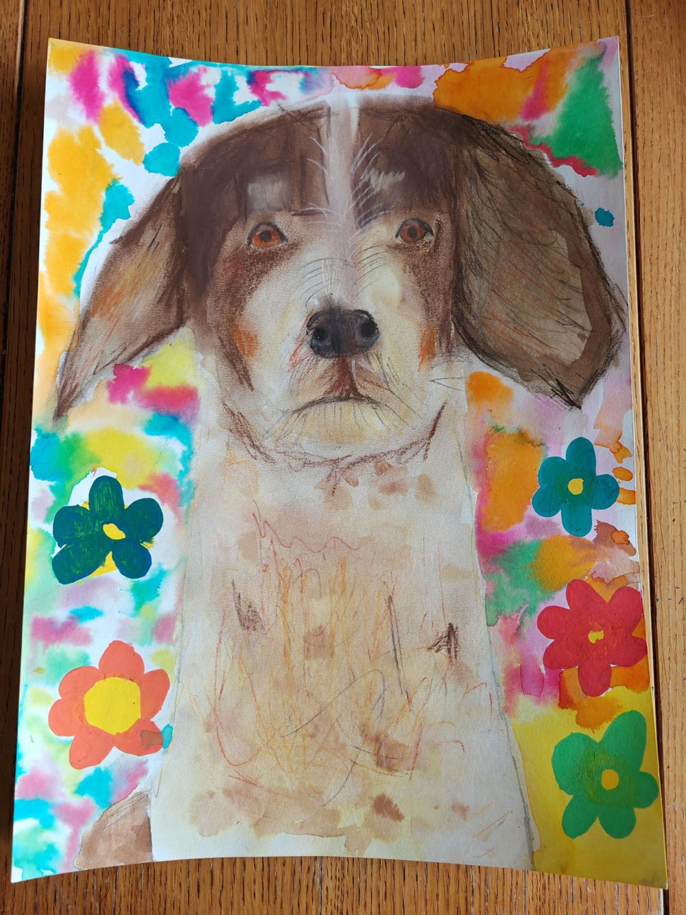 “Forest was the best boy and always loved a hug. The rainbow of colours represent how happy he made me feel and the flowers are for joy.”
